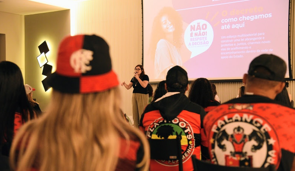 Secretaria de Estado da Mulher e Livre de Assédio reúnem torcidas organizadas do Flamengo contra a violência às mulheres