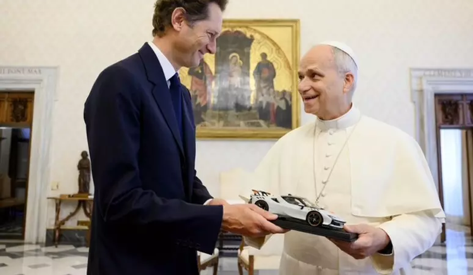 O presidente da Stellantis e da Ferrari, John Elkann, se encontrou nesta sexta-feira (26) com o papa Leão XIV e presenteou o líder da Igreja Católica com um volante de um carro de Fórmula 1 da escuderia de Maranello.