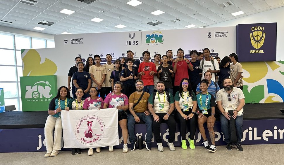 A conscientização sobre o diagnóstico e o tratamento precoce do câncer de mama foram temas de uma conversa com os estudantes no palco principal do Boulevard dos Atletas, no Centro de Convenções de Natal, nesta quarta-feira (8) durante os Jogos Universitários Brasileiros, que estão sendo realizados até o dia 18 de outubro na capital do Rio Grande do Norte. O evento faz parte do CBDU social, um programa institucional não-esportivo da Confederação de Desporto Universitário (CBDU) que tem como objetivo transformar o esporte universitário em uma ferramenta de impacto social. O encontro contou com a participação de remadoras da equipe Reamar, um grupo de mulheres de Natal ligado ao movimento Remadoras Rosa do Brasil, com mulheres que enfrentaram ou ainda enfrentam o câncer de mama.