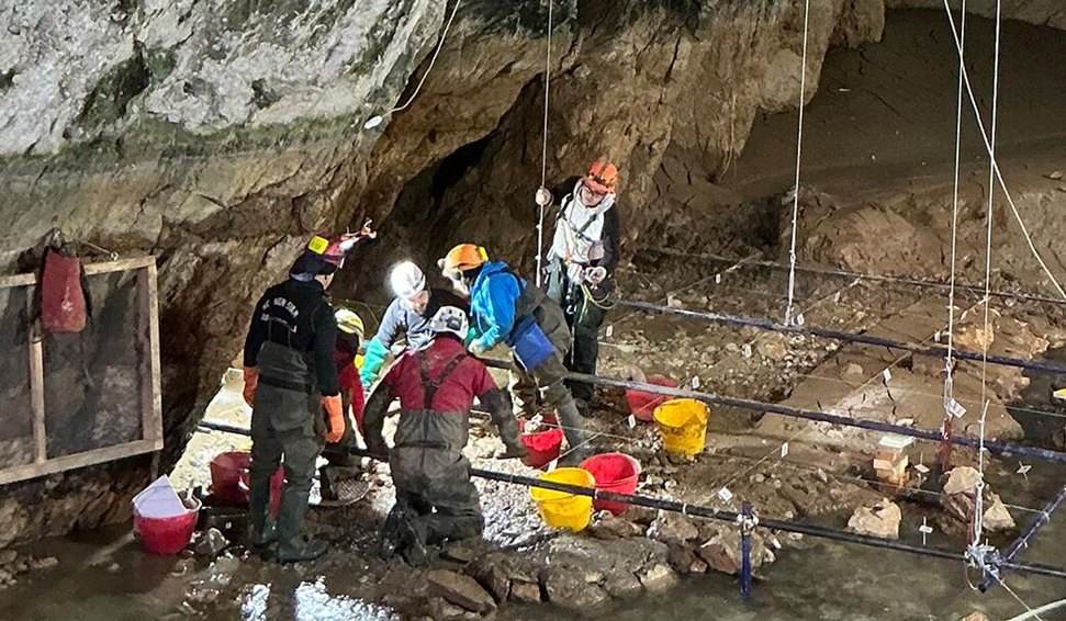 A equipe também ampliou o conhecimento sobre habitações palafíticas da Idade do Bronze, inicialmente identificada em campanhas anteriores. Datada do segundo milênio a.C., trata-se do único exemplo conhecido na Europa de uma estrutura sobre estacas construída em ambiente subterrâneo. As escavações recentes revelaram novas partes dessa habitação e um raro formão de bronze com o cabo de madeira perfeitamente preservado — um achado notável, graças às condições estáveis de umidade no interior da caverna, que permitiram conservar esse material orgânico.