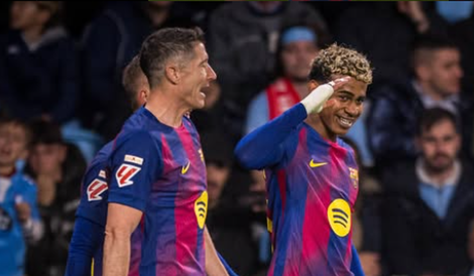 Já nos acréscimos do primeiro tempo, Lamine Yamal, de 18 anos, aproveitou rebote da zaga celeste e chutou no canto esquerdo para recolocar o Barcelona em vantagem antes do intervalo.