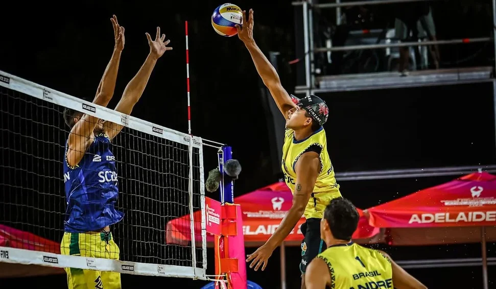 “É o primeiro jogo, e ainda mais jogar Brasil contra Brasil, eu acho que o nervosismo é um pouquinho maior. E jogar uma Copa do Mundo, acho que o primeiro jogo também deixa um pouco nervoso. Mas eu e George conversamos muito aqui dentro do banco também. A gente falou: a gente está nervoso dentro da quadra, mas vamos tentar sempre um ajudar o outro. E jogar um jogo caseiro, foi o que eu falei para ele, é, é sempre lá em cima. Brasil contra Brasil é praticamente quase uma semifinal, né? E a nossa chave está sendo a mais forte do torneio”, pontuou Saymon, referindo-se aos atuais campeões olímpicos Åhman e Hellvig (Suécia), que também estão na chave C.