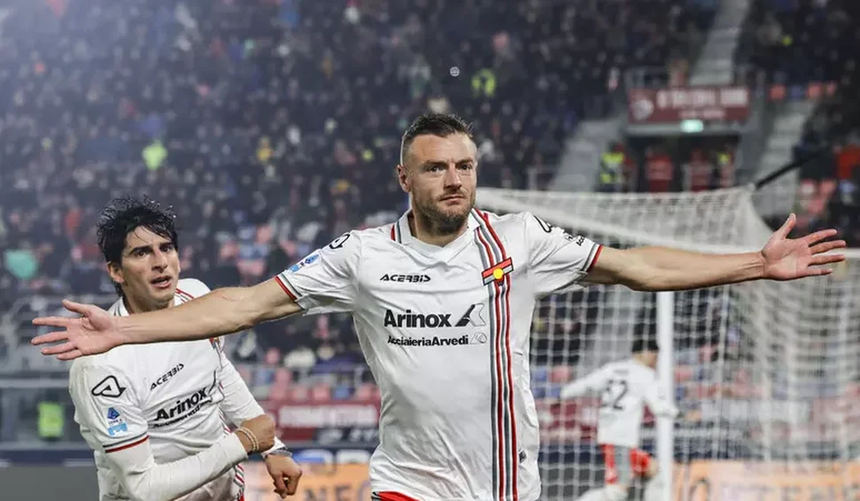 Com dois gols do veterano Jamie Vardy, os lombardos bateram o Bologna fora de casa por 3 a 1 e acabaram com a longa sequência sem derrotas do oponente.