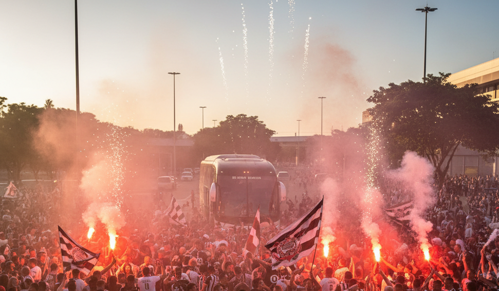 O entorno do CT Joaquim Grava se transformou em arquibancada neste sábado, com a presença marcante da torcida do Corinthians. Antes do embarque da delegação rumo ao Rio de Janeiro, milhares de torcedores se reuniram em frente ao centro de treinamento para criar um clima de decisão às vésperas do segundo e decisivo confronto contra o Vasco, válido pela final da Copa do Brasil, marcado para este domingo, às 18h (de Brasília), no Maracanã.