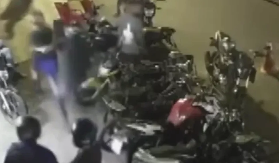 Além das agressões, os envolvidos ainda derrubam motocicletas que estavam estacionadas em frente ao estabelecimento comercial, causando danos antes de fugir do local. A ação gera tumulto e preocupação entre comerciantes e moradores da área.