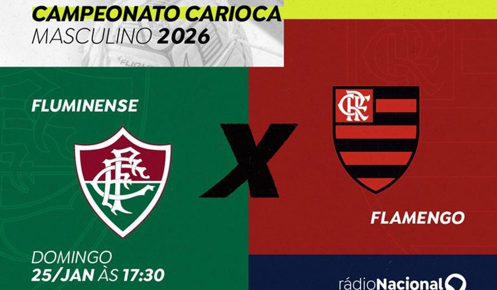 A Rádio Nacional transmite, neste domingo (25), o primeiro Fla-Flu do ano pelo Campeonato Carioca 2026. A jornada esportiva da emissora para Fluminense x Flamengo tem início às 17h30 e a bola rola às 18h, direto do Maracanã, no Rio de Janeiro.