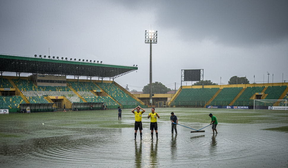 Durante o intervalo, a arbitragem comandada por Murilo Tarrega Victor aguardou por mais de uma hora na tentativa de retomar o jogo, mas as condições do campo não melhoraram, levando à decisão de adiar o restante da disputa.
