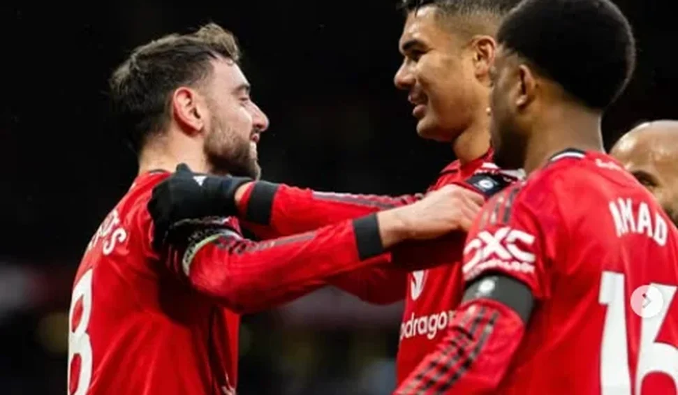 Equipe de Casemiro supera rival por 2 a 0 em Old Trafford, homenageia vítimas de Munique e mantém boa fase na Premier League.