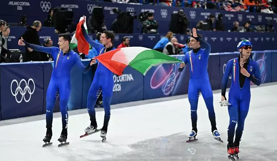 A Itália conquistou nesta sexta-feira (20) a medalha de bronze no revezamento masculino dos cinco mil metros da patinação de velocidade em pista curta nos Jogos Olímpicos de Inverno de Milão e Cortina d'Ampezzo.