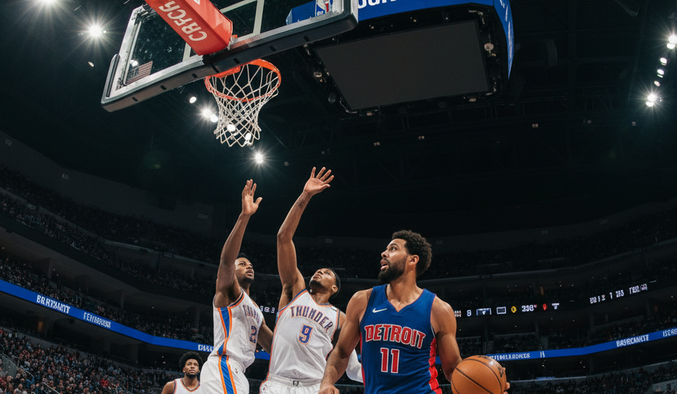 O Thunder chegou a ameaçar a vitória dos Pistons ao reduzir a diferença para uma posse (108 a 105) no último quarto. No entanto, após quatro rebotes ofensivos consecutivos, Javone Green converteu uma bola de três e consolidou a vantagem de Detroit até o fim.