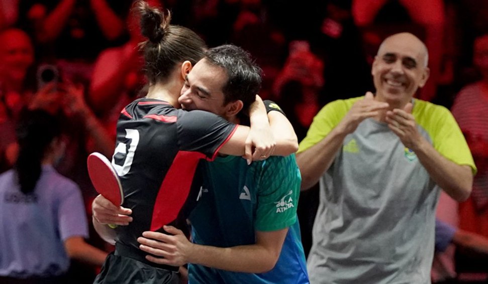 Uma façanha e tanto! Os mesatenistas brasileiros Hugo Calderano e Bruna Takahashi derrotaram a dupla número 1 do mundo e pela primeira vez na história levantaram o troféu de duplas mistas em um torneio Smash, que distribui a maior pontuação no circuito mundial (2 mil pontos). A proeza ocorreu nesta sexta-feira (27), na final do WTT Smash de Singapura.