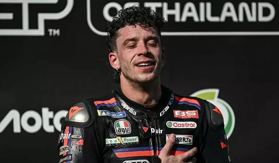 O italiano Marco Bezzecchi, da Aprilia, venceu neste domingo (1º) o Grande Prêmio da Tailândia de MotoGP, que marcou a primeira presença brasileira em uma prova da categoria desde a aposentadoria de Alex Barros, em 2007.