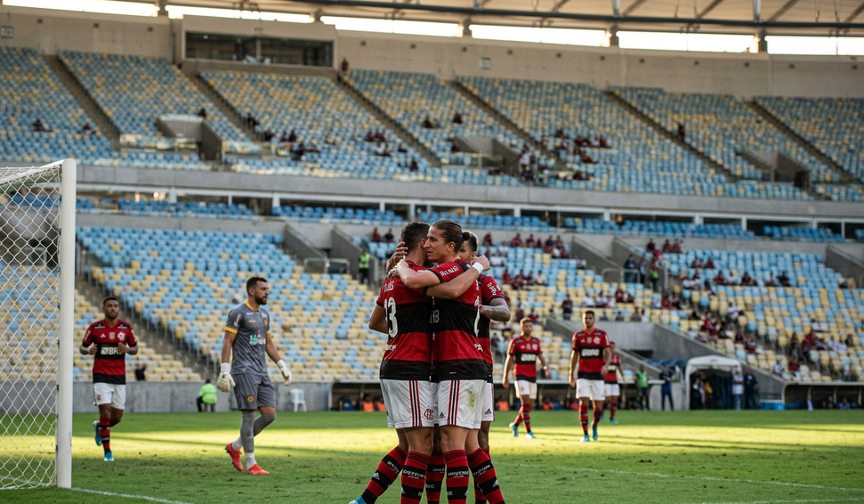 Em um Maracanã com público pequeno e com protestos antes de a bola rolar, o Flamengo não teve dificuldades para garantir presença na sua sétima final seguida de Campeonato Carioca. Nesta segunda-feira, o time de Filipe Luís pôde retomar um pouco da confiança depois do vice da Recopa para o Lanús-ARG e goleou o Madureira por 8 a 0, se classificando com o agregado de 11 a 0.