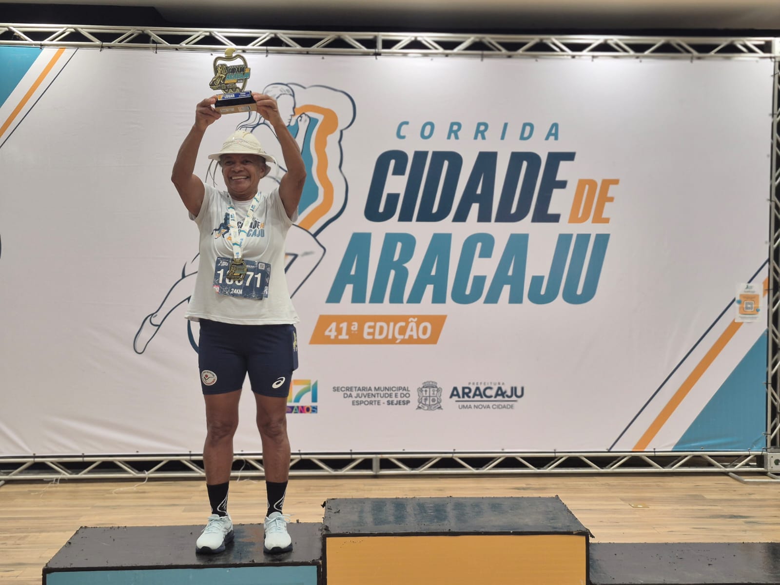 A maratonista arapiraquense Maria do Carmo Cruz, a Caminha, de 68 anos, não para. Ela venceu e subiu ao pódio em 2º lugar na 41ª edição da Corrida Cidade de Aracaju, que aconteceu no dia 28 de março deste ano.