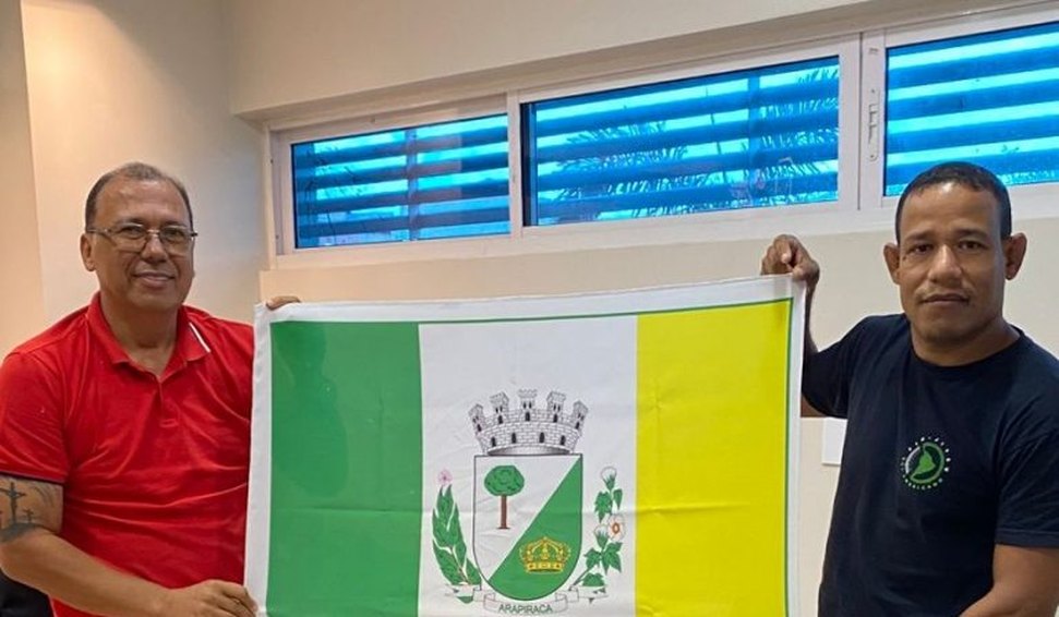 Na manhã desta sexta-feira (17), Alexandre Negão recebeu das mãos do secretário de Esporte de Arapiraca, Fabiano Leão, a bandeira do município. O atleta conta com o apoio da Prefeitura de Arapiraca, por meio da Secretaria Municipal de Esporte (SMESP).