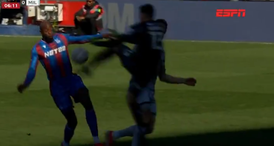 Atacante leva 'voadora' na cabeça e sai de campo de maca na Copa da Inglaterra