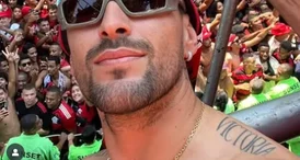 Elenco flamenguista celebra tetracampeonato da Libertadores com torcedores no centro do Rio de Janeiro