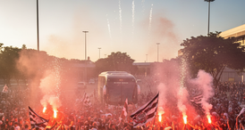 Milhares de corintianos se reúnem no CT Joaquim Grava para apoiar o time antes do embarque ao Rio de Janeiro, onde enfrentam o Vasco na final.