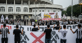 Torcedores do Santos estendem faixas de protesto contra diretoria e gestão