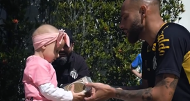 Pequena santista na luta contra o câncer conhece Neymar, time e mascotes do clube e ganha apoio