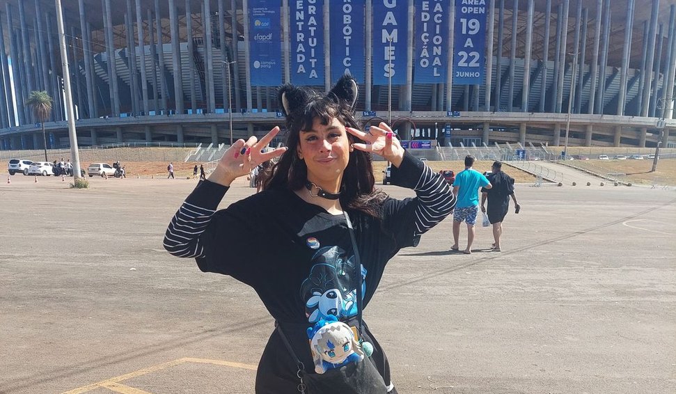 Zoe revela suas inspirações para a montagem dos figurinos. “São de vários jogos de anime. Tem a VTuber [YouTuber Virtual] Gawr Gura. Curto vários outros de anime. Eu também adoro Genshin [Impact], que é um joguinho onde coleto personagens que exploram o mundo aberto e fazem missões. É bem divertido”, garante Zoe.