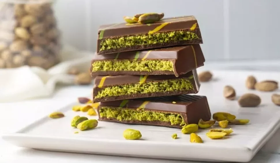 Com ao menos 45% de pistache, o recheio do chocolate também traz dois símbolos culinários típicos do Oriente Médio, o tahini (pasta feita de sementes de gergelim moídas) e knafeh (um doce árabe feito com massa muito fina e queijo, embebido em xarope doce de açúcar). O resultado é um chocolate suave, mas crocante, que tem despertado o interesse de viajantes por Dubai que, além de visitar os pontos turísticos da cidade, querem conhecer a chocolateria que o inventou.