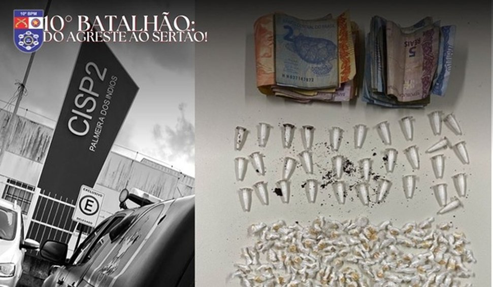 Duas ações realizadas pelo 10º Batalhão da Polícia Militar de Alagoas, na tarde desta segunda-feira (30), resultaram na prisão de três pessoas suspeitas de envolvimento com o tráfico de drogas em Palmeira dos Índios. As operações ocorreram em pontos diferentes do centro do município e levaram à apreensão de entorpecentes, dinheiro e aparelhos celulares.