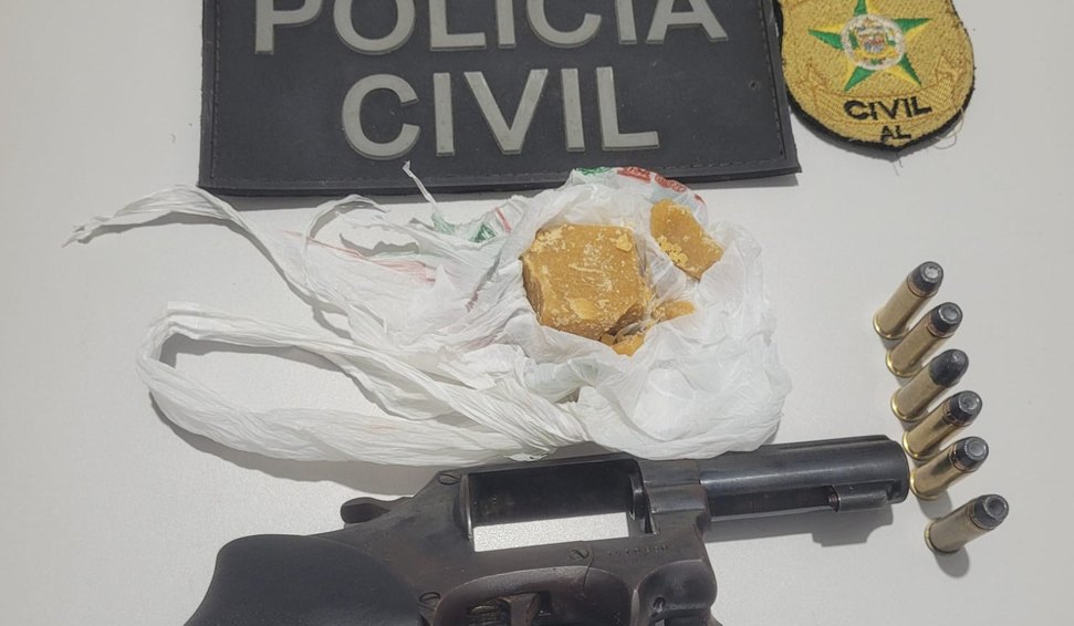 Durante o cumprimento do mandado, expedido pela Vara do Único Ofício de Boca da Mata, os policiais encontraram com o acusado um revólver calibre .38 com seis munições intactas e pedras de crack prontas para comercialização.