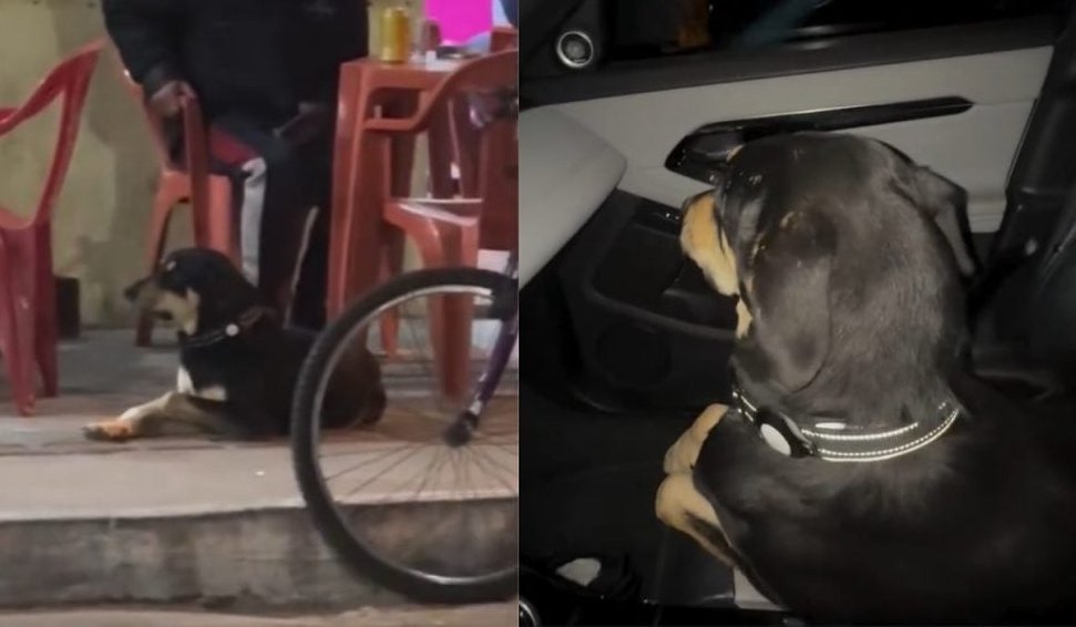 Nas imagens, compartilhadas pelo próprio dono, ele chega de carro na porta do estabelecimento e o cachorro, ao perceber a carona, corre em direção ao veículo.