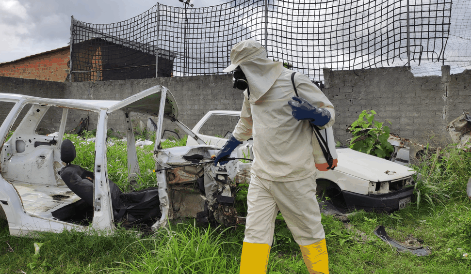 A iniciativa consiste na aplicação de inseticida nas áreas externas de locais estratégicos, como borracharias, oficinas mecânicas e ferros-velhos da cidade.