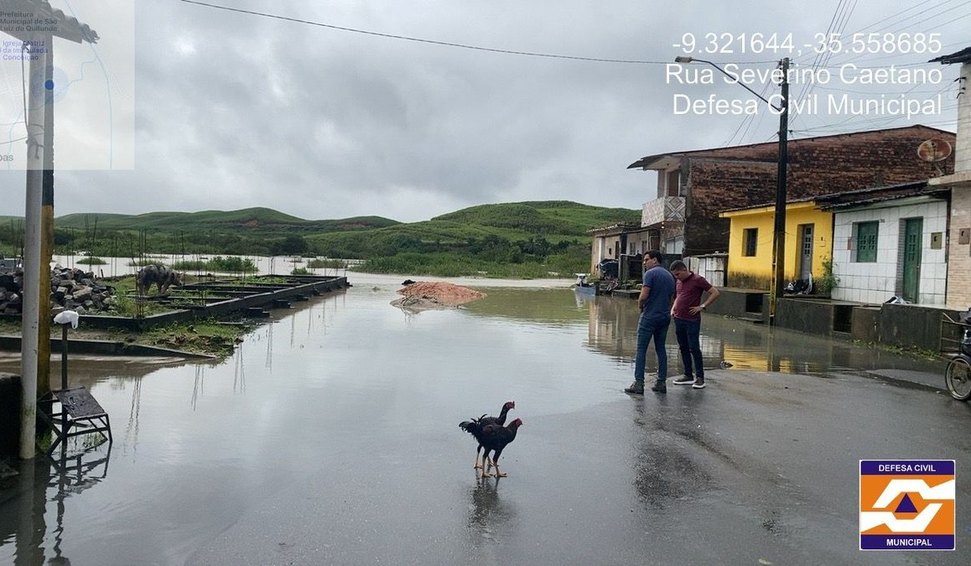 As fortes chuvas que caíram nesta terça-feira (5) provocaram o transbordamento dos rios Manguaba e Santo Antônio, afetando as cidades de Porto Calvo e São Luís do Quitunde, na região Norte de Alagoas. A informação foi confirmada pela Defesa Civil Estadual, que acompanha a situação de perto.