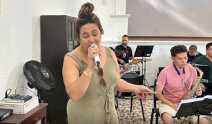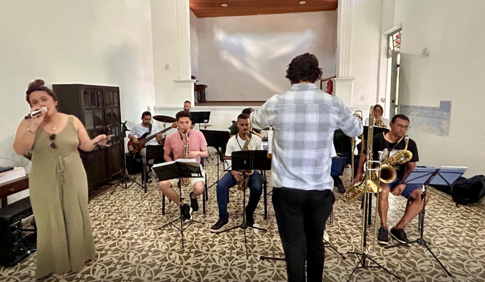 Sob regência do maestro e trombonista Rony Ferreira, a atividade que abriu a programação musical do 2º Festival Penedo Sabor & Jazz incluiu orientações sobre canto, a cargo de Rebeca Deleu.