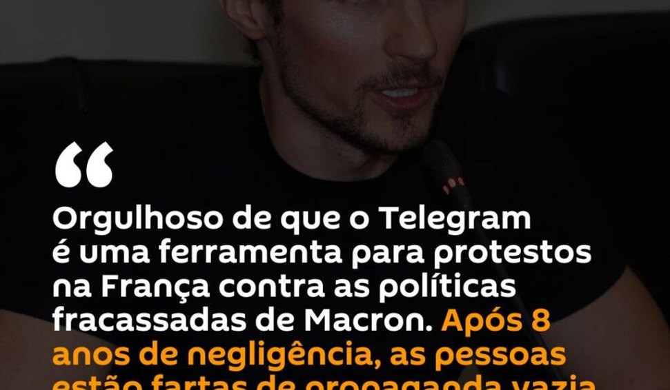 O fundador do Telegram, Pavel Durov, declarou na sua conta na rede social X que se sente orgulhoso devido ao uso da sua aplicação durante os protestos contra a política do presidente francês Emmanuel Macron.