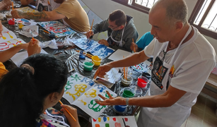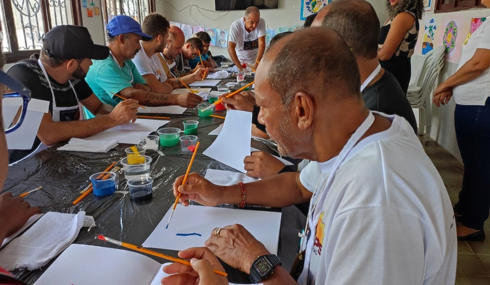 Com pincéis, tintas e liberdade criativa, os participantes podem experimentar novas formas de expressão, mostrando que a arte é também um caminho de cuidado, acolhimento e transformação social. A atividade foi conduzida pelo professor de artes Persivaldo Figueirôa, que compartilhou técnicas de pintura e estimulou a criatividade dos participantes.