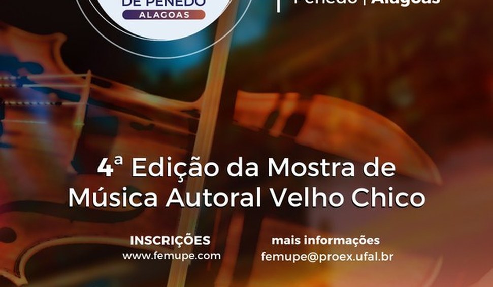 Esta será a 4ª edição da mostra e acontece durante a programação da 16ª do Femupe, que acontece nos dias 23, 24 e 25 de outubro, na cidade histórica de Penedo, e busca estimular e difundir a produção musical autoral em seus diferentes gêneros. De acordo com o edital, está assegurada a seleção de, pelo menos, 40% de músicas de autoria de penedenses. Quem for selecionado vai receber cachê de R$1.000,00 por música, podendo haver apenas a seleção de uma música por artista.