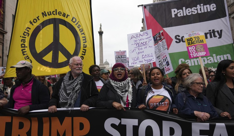 Os manifestantes começaram a se reunir em Portland Place, perto da sede da BBC, às 14h, horário local (10h horário de Brasília) e carregavam cartazes com os dizeres "Não ao racismo, não a Trump" e "Parem Trump", além de faixas contra a implantação de armas nucleares dos EUA no Reino Unido e o fornecimento de armas a Israel.