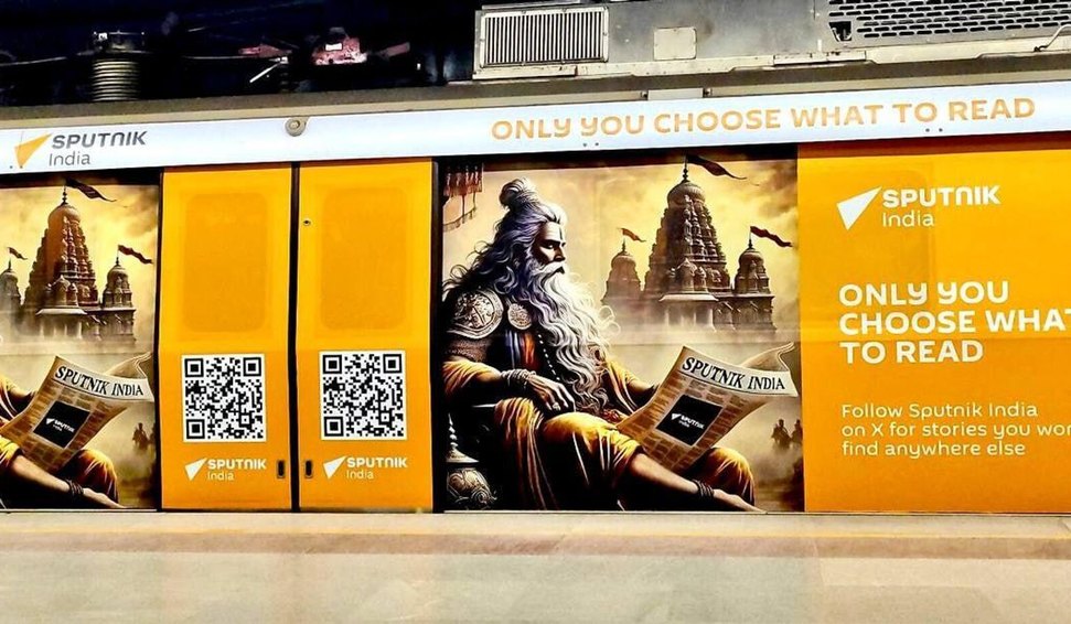 Trem da marca Sputnik Índia aparece no metrô de Deli