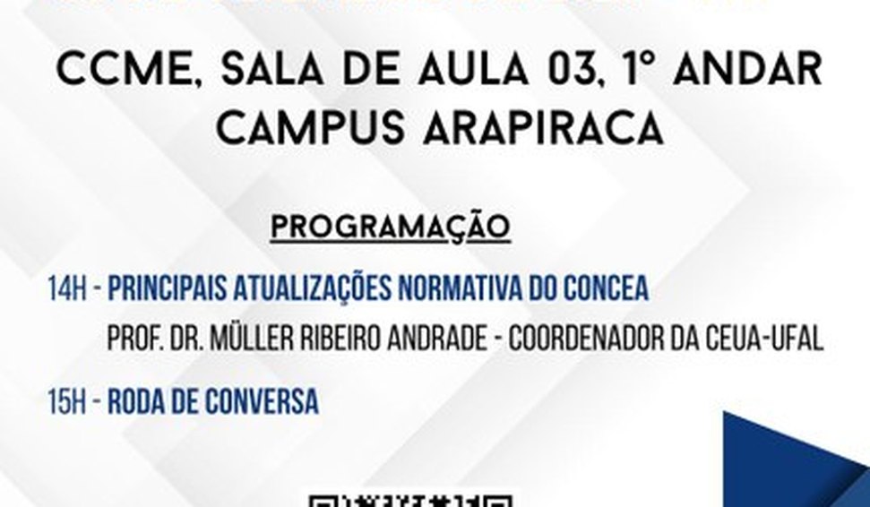 De acordo com o coordenador, professor Müller Ribeiro Andrade, a iniciativa busca aproximar a comunidade acadêmica da comissão e fortalecer a formação em torno dos princípios éticos e legais relacionados ao uso de animais. “As Ceuas têm o compromisso de promover educação, treinamento e orientação para que a pesquisa científica se desenvolva de forma responsável e ética”, destaca.