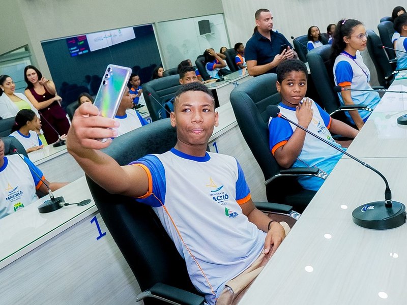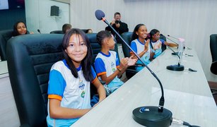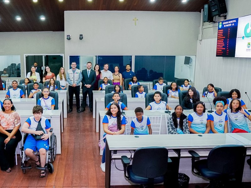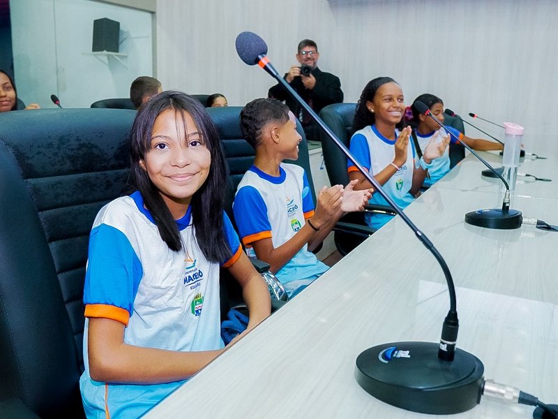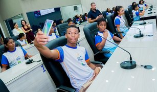 Estudantes do sexto e sétimo anos da Escola Municipal Maria de Lourdes Bezerra, na Mangabeiras, participaram do lançamento do programa Circuito Câmara, nesta quinta-feira (25), na Câmara Municipal de Maceió.