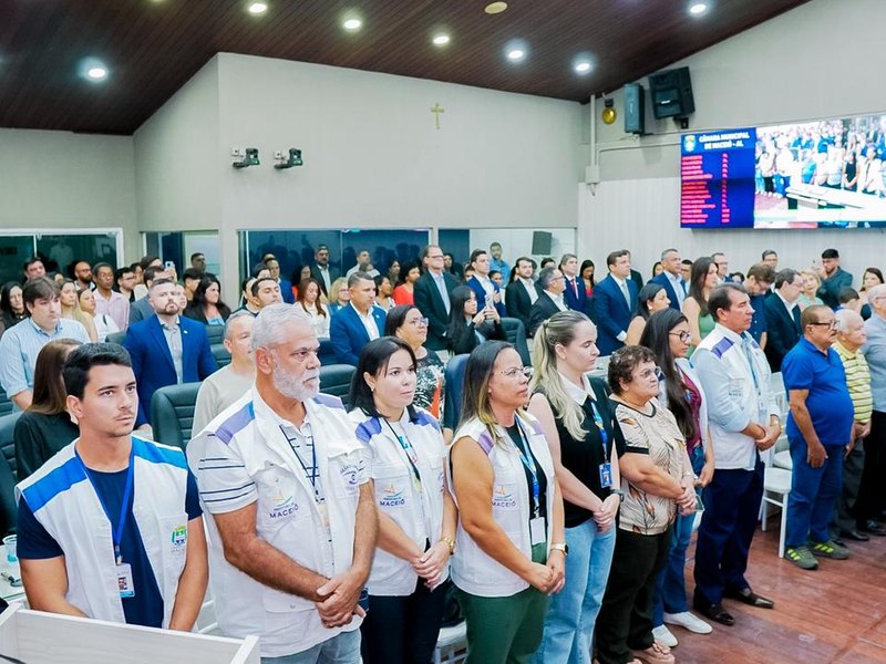 No plenário lotado, Chico Filho ressaltou a iniciativa acertada em reconhecer os dois gestores. Estiveram presentes os vereadores Davi Davino e Silvania Barbosa, compondo a mesa, Cal Moreira, David Empregos, Thiago Prado, Milton Ronalsa, Luciano Marinho, Siderlane Mendonça, Marcelo Palmeira, Caio Bebeto, Neto Andrade, Jonatas Omena, Jeannyne Beltrão e Samyr Malta. Também compuseram a mesa o deputado estadual Cabo Bebeto e o secretário de Segurança Comunitária, Eduardo Marinho.