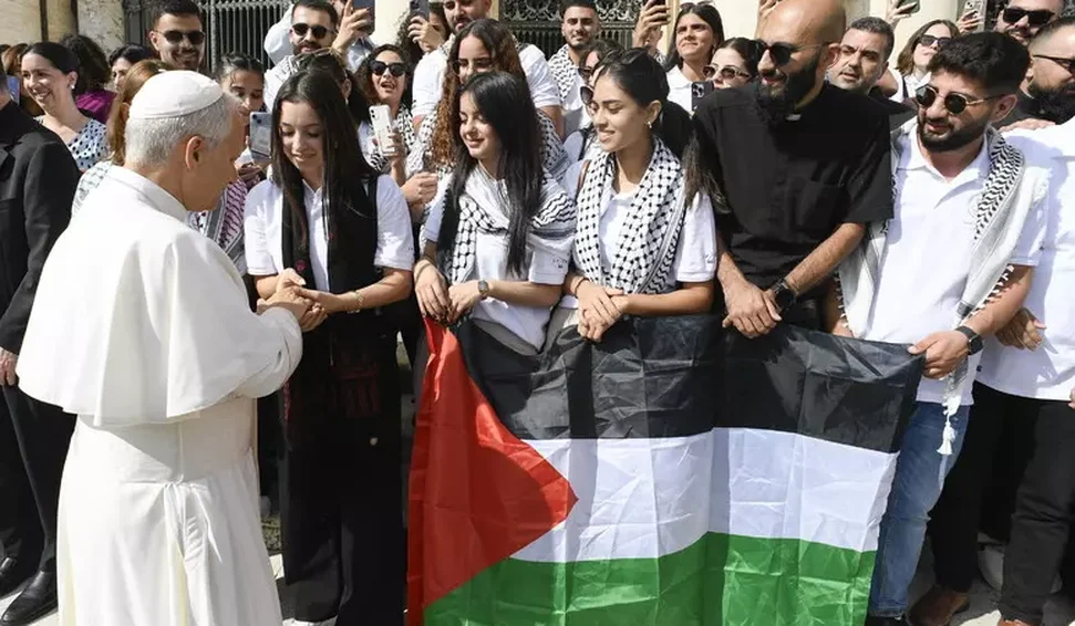 O grupo, que levou uma bandeira palestina ao Vaticano, deveria ter participado do Jubileu dos Jovens em agosto passado, mas não obteve a tempo o visto necessário para ingressar na Jordânia, de onde embarcariam para Roma.
