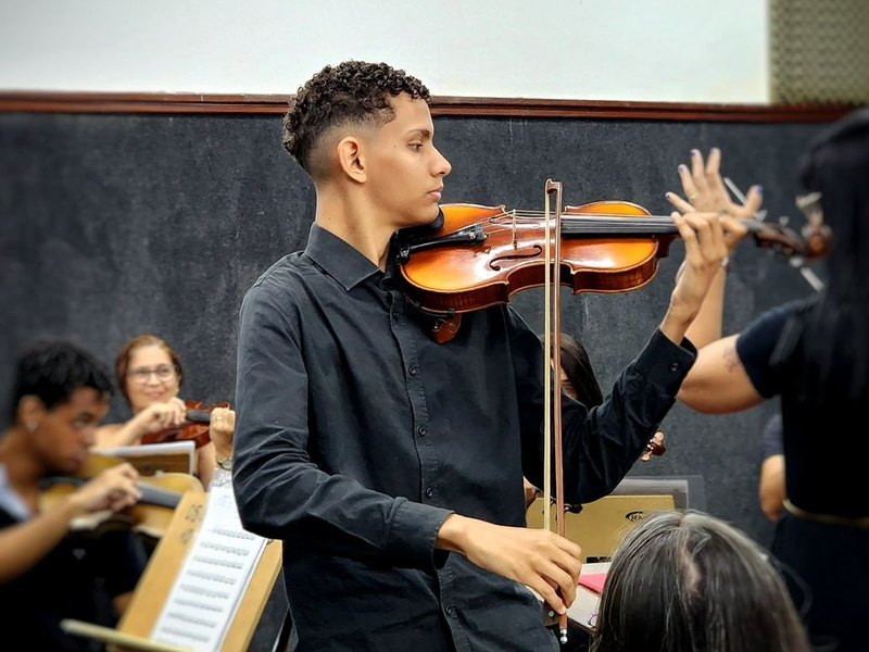 Apoiar as comunidades pode abrir portas para muitos sonhos. Lucas Kauã Barbosa Pires tem 17 anos e é aluno do projeto de extensão Laboratório de Violino, vinculado à licenciatura em Música da Universidade Federal de Alagoas (Ufal). Seu talento descoberto aos 13 anos é acompanhado na Ufal desde então e, agora, ele foi o único alagoano selecionado para participar do Festival Internacional de Música de Santa Catarina.