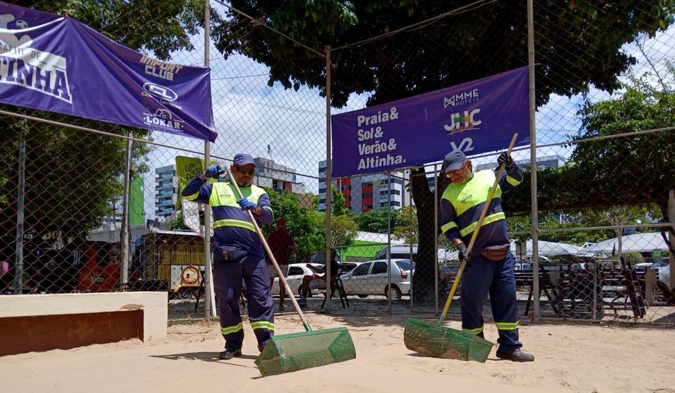 Neste domingo (12), a Autarquia Municipal de Desenvolvimento Sustentável e Limpeza Urbana (Alurb) começou a intensificar os serviços de limpeza em quadras de areia da capital alagoana.