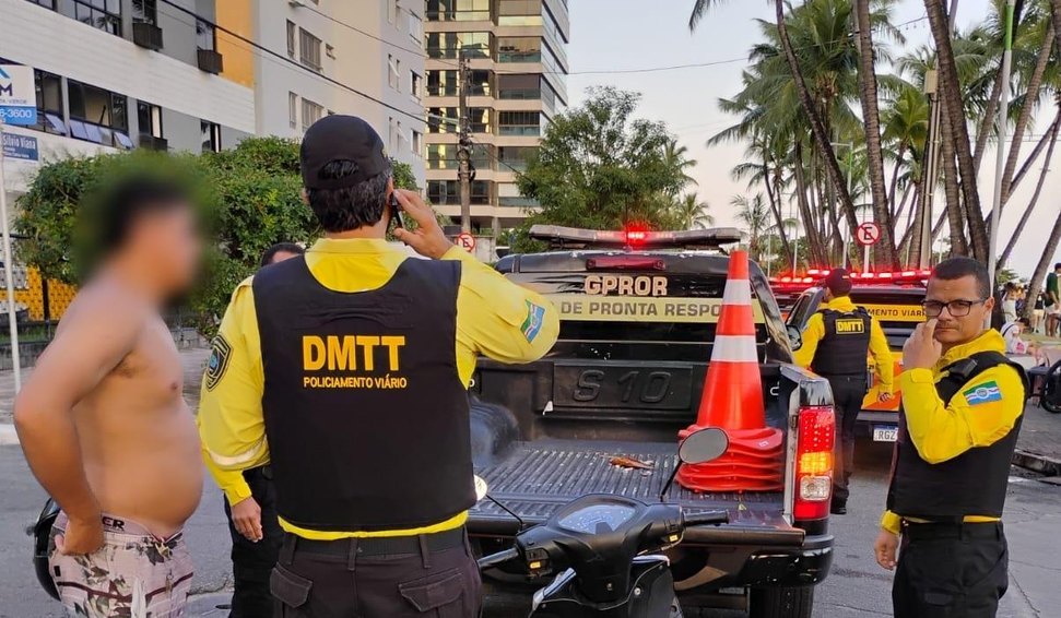 Condutor sem CNH é flagrado transpondo bloqueio viário durante a Rua Aberta, na Ponta Verde