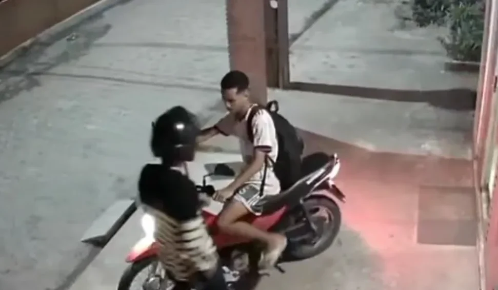 Nas imagens, um dos suspeitos desce da motocicleta e aborda o trabalhador, que havia acabado de estacionar em frente a uma lanchonete. Uma mulher que falava ao telefone na calçada corre para dentro do estabelecimento ao perceber a ação. O entregador, sem reagir, entrega a moto e os criminosos fogem logo em seguida.