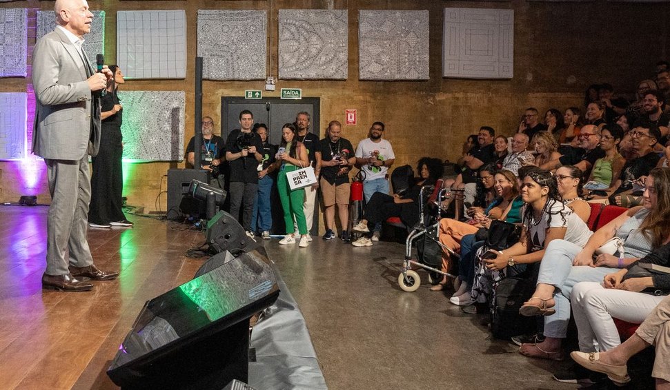 No auditório lotado, o professor, historiador e influencer falou sobre os desafios da educação em um mundo hiperconectado.