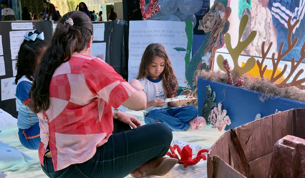 O primeiro dia de atividades, na manhã da quinta contou com a participação de alunos do Centro Municipal de Educação Infantil (CMEI) Casa da Amizade, localizado no Tabuleiro, e do CMEI Professora Albene Clarindo Duarte, no Barro Duro. Os estudantes apresentaram projetos pedagógicos no estande da Semed, que alia tecnologia e inovação ao aprendizado nas escolas da rede municipal, despertando o interesse do público para práticas criativas e sustentáveis desenvolvidas na educação básica.
