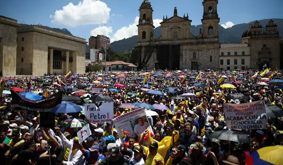 A Secretaria de Segurança, Convívio e Justiça de Bogotá condenou os ataques e prestou apoio à população que ficou presa no meio das manifestações. "Denunciamos as agressões de vândalos encapuzados com artefatos incendiários e flechas contra nossos policiais nas proximidades da embaixada dos Estados Unidos", afirmou o órgão no X.