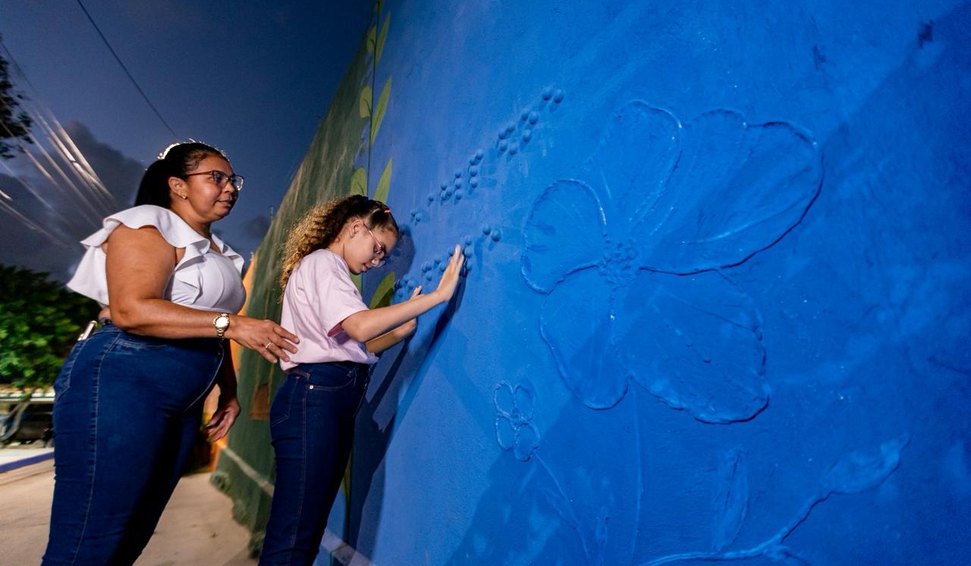 Um dos grandes destaques da nova praça é uma pintura sensorial, criada pelos artistas alagoanos Rapha Lins e Yrlan Lins. Inspirados na história de Mika, uma menina de 11 anos, moradora do bairro e deficiente visual, os artistas desenvolveram uma obra que pode ser sentida com as mãos, com relevos e a frase em braile “Arte é amor que se sente”.