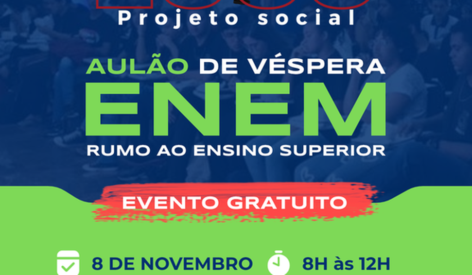 Atenção, estudantes! Estão abertas as inscrições para os interessados em participar de um aulão gratuito para o Exame Nacional do Ensino Médio (Enem). A atividade é uma iniciativa do projeto de extensão da Universidade Federal de Alagoas (Ufal) “O Mil é Nosso” e será realizado na véspera da primeira etapa da prova, no dia 8 de novembro, das 8h às 12h, no auditório do Tribunal de Contas do Estado de Alagoas, localizado no Farol.